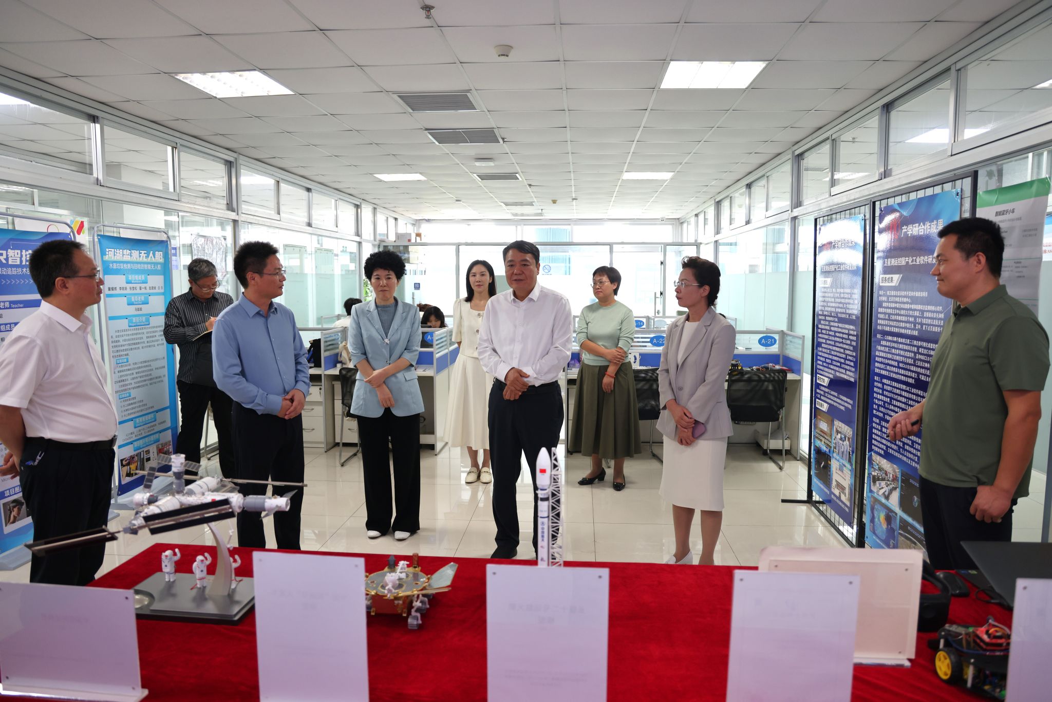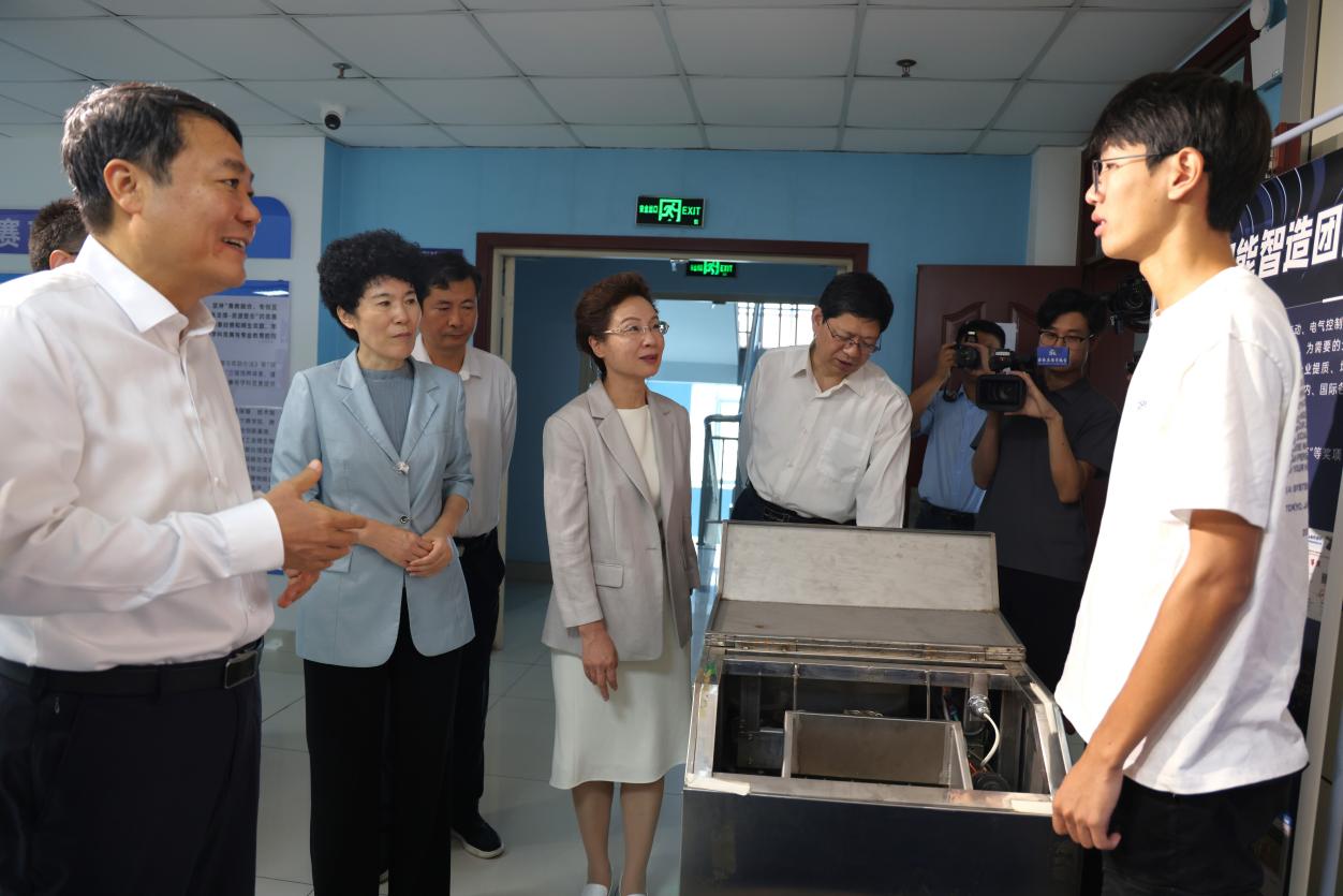 在数字光电实验室,路红卫认真听取关于光电技术研发及应用前景的介绍;在劳模创新工作室和省工坊啤酒工程技术研究中心,他详细询问技术突破、产学研合作及成果落地中存在的实际困难。在三融众创空间,他重点关注学生创新创业项目的孵化流程和实际成效,与参与项目的学生交流,鼓励他们大胆创新、勇于实践。