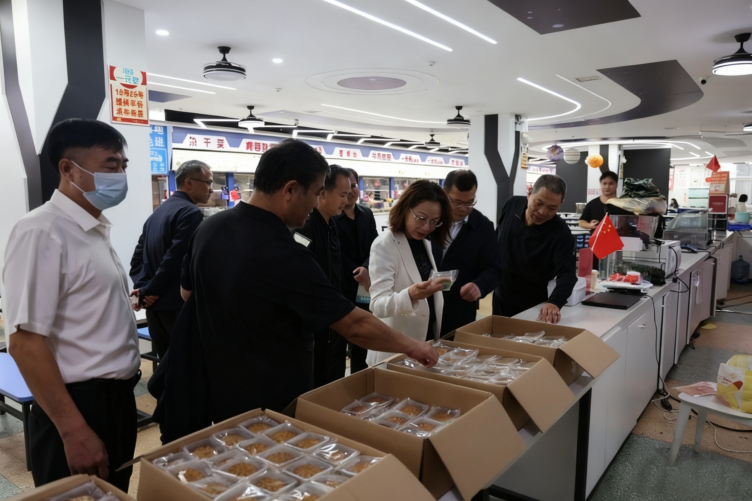 检查组依次走访北大门门禁点、报警监控中心、水电值班室、智能制造学院值班岗位,重点检查节日期间人员管控、应急值守和运行保障情况。在东南校区19号学生宿舍,校领导深入了解学生留宿情况,并就“一站式”学生社区建设运行进行现场指导,要求推动管理服务力量下沉一线,打造富有温度、贴近学生、功能集成的育人新阵地。在东南校区餐厅,校领导检查假期供餐保障,强调要严把食品安全关,确保留校师生吃得安心、舒心。在青年公寓留学生宿舍,校领导亲切慰问国际学生,向他们致以节日祝福,并亲手送上中秋月饼,传递中华优秀传统文化的温情与包容,鼓励他们融入校园生活,做中外文化交流的桥梁与纽带。