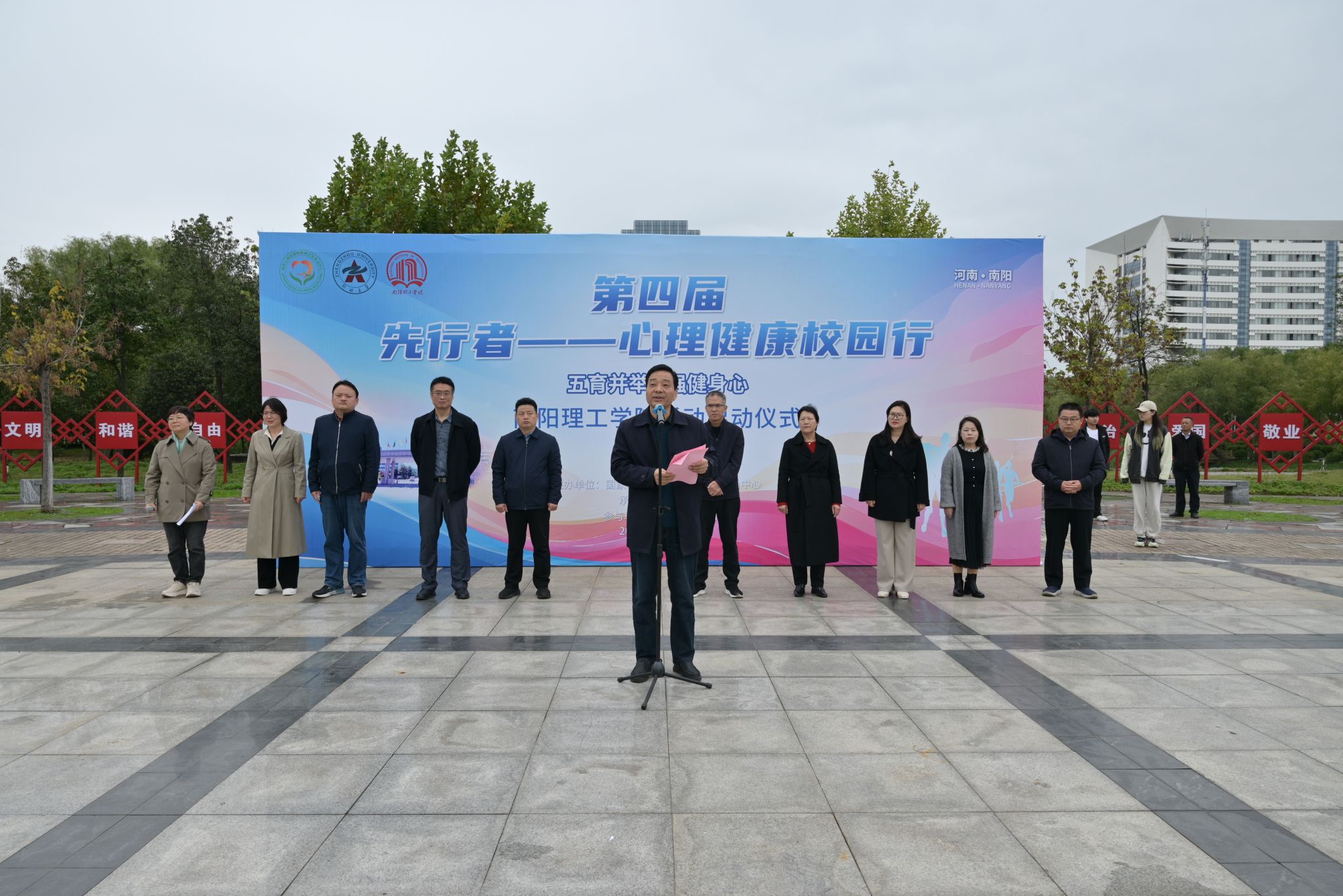 本网讯(特约记者/孟凡锐 莫华敏)10月11日,我校在齐贤广场举办全国第四届“先行者--心理健康校园行”南阳理工学院站活动启动仪式,党委副书记、工会主席董豪出席活动,学生处、团委、心理健康教育中心负责人,各教学院党委副书记,心理专干教师和200余名学生参加。