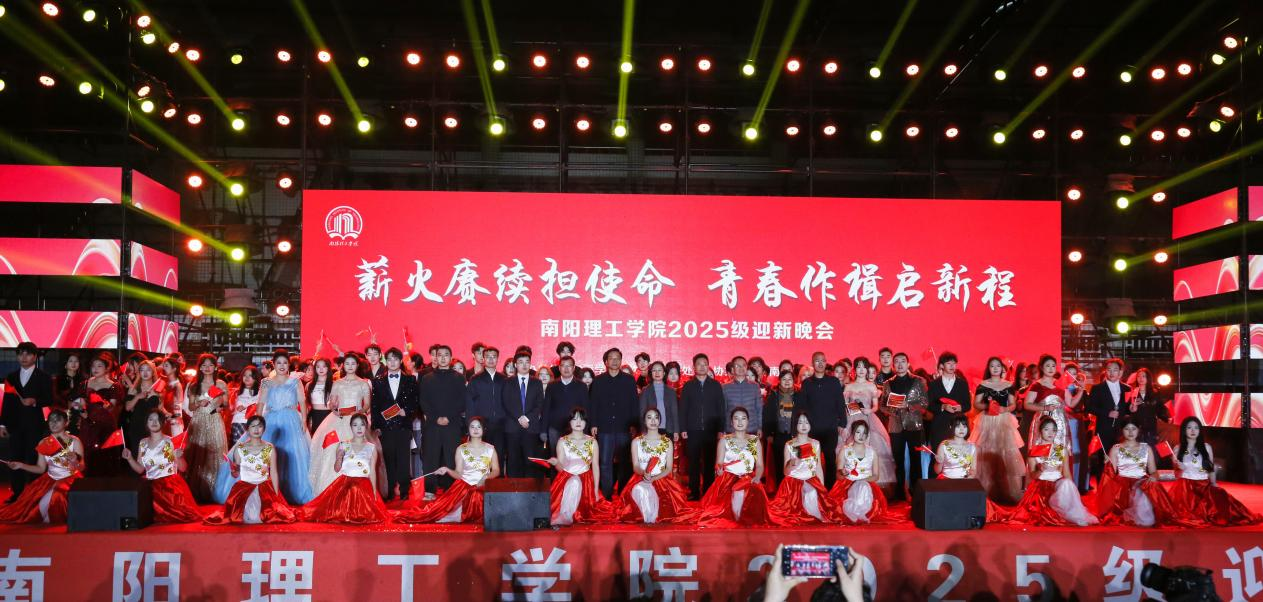 本网讯(特约记者/黄晨 学生记者/刘奥云)10月23日晚,南阳理工学院“薪火赓续担使命,青春作楫启新程”2025级迎新晚会在东南校区体育场举行。校党委书记张爱红,校长郝好山,校党委副书记、工会主席董豪,副校长蔡广宇、黄金书出席并观看晚会,学校各职能部门及学院的教师代表和2025级全体新生一同观看晚会。