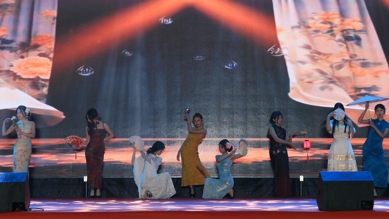 第二篇章聚焦“筑梦”,用丰富的艺术形式展现新生的多元才华与青春个性。教师陈婷婷与学生合作的歌伴舞《节日欢歌》,欢庆的鼓点与温暖的唱腔交织,传递出南工“师生共同体”的育人温度;古典舞《青庭云月》以团扇为媒,扇影流转间,东方美学的静谧与雅致悄然绽放,宛如将千年诗意搬上舞台;歌曲串烧《若月亮还没来》《爱你3000》紧随其后,将青春里的期盼与告白融入音符;走秀表演《古韵新裁》别出心裁,将南阳传统纹样、汉服元素与现代服装设计结合,诠释出“传统与时尚共生”的青春表达;配音表演《声临其境》为该篇章收尾,表演者仅用声音便构建出千变万化的场景,展现出语言艺术的独特魅力,为观众带来别样惊喜。