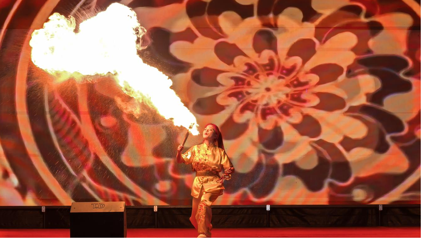 第三篇章以“奔赴”为题,将个人成长与家国使命相连,奏响新时代青年的担当强音。街舞串烧《活力向未来》点燃全场,动感的律动、张扬的姿态,既是青年奔赴热爱的态度表达,更是南工学子“敢闯敢拼”的精神缩影;朗诵《青春答卷》将历史回响与青春脉搏同频,一句“请党放心,强国有我”,不仅是激情满怀的誓言,更是脚踏实地的承诺;武术《武动山河》震撼登场,刚劲有力的招式、挥斥方遒的意气,既展现了中华武术的磅礴气势,更暗合南工“不甘示弱”的奋斗基因;歌曲串烧《喜欢你》《我的秘密》等紧随其后,多元曲风碰撞出青春激情,展现出新时代青年开放包容的精神风貌;晚会最终在歌曲《我爱你中国》中推向高潮,激昂的歌声响彻操场,化作2025级新生对祖国的青春礼赞,为这场迎新盛宴画上圆满句号。