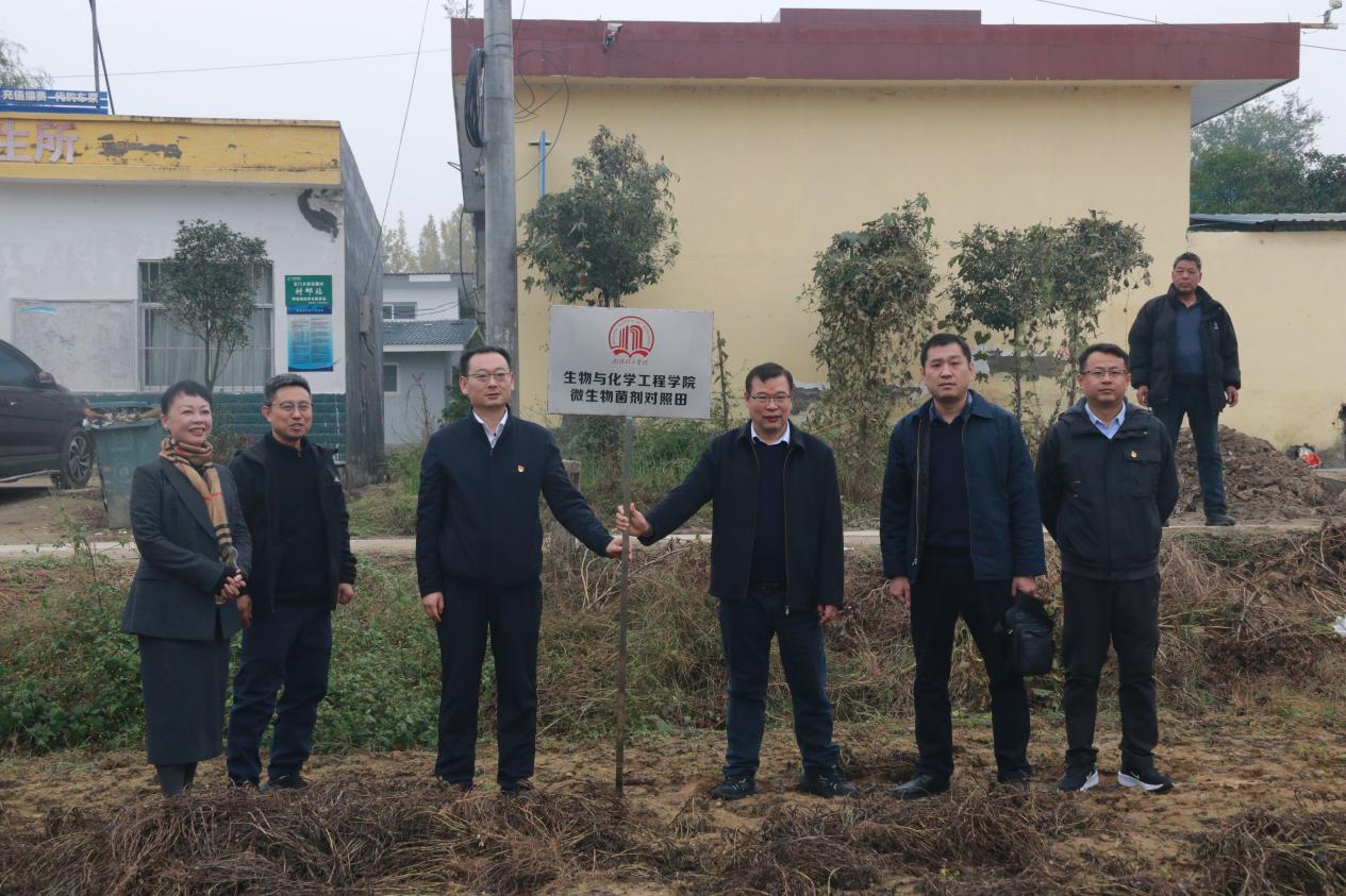 在黑石寨村试验田里,黄金书与生物与化学工程学院一起为试验田揭牌。学院将持续探究微生物菌剂对当地农田土壤、作物生长的改善情况,推进绿色农业的发展。在裴庄村村委会,黄金书详细了解乡支柱产业发展及乡村教育情况,随后与师生共同参观爱诺生物科技有限公司和康信冷鲜食业有限公司,就企业产业帮扶、科技需求与人才培养等进行深入交流,提出要进一步巩固深化校企党建联盟合作机制,同谋发展,再谱新篇。