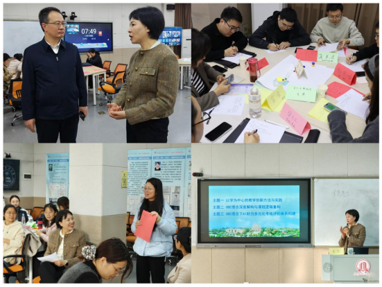 此次培训聚焦三大核心主题,层层递进深化教学认知。在“OBE 视角下教学评一体化设计”环节,陆芳结合多学科教学实例,以“BOPPPS+AI”为抓手,详解如何以学生学习成果为导向,实现教学目标、过程与评价的精准衔接;“以学为中心的有效课堂教学实施技巧”模块中,她通过模拟课堂、互动研讨,分享学情反馈、小组协作等实用策略,助力教师破解“满堂灌”困境;“AI 赋能教学能力提升与教学创新”主题里,陆芳演示智能备课工具、个性化学习分析系统的应用,引导教师探索“AI + 教育教学”的实践方向。
