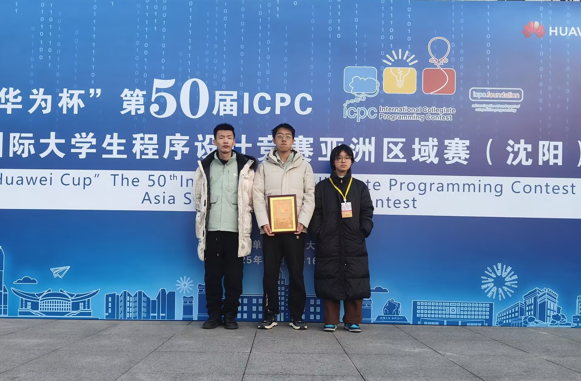 本网讯(特约记者/陈可)11月15日至16日,第50届ICPC国际大学生程序设计竞赛亚洲区域赛(沈阳)在东北大学举行。共有来自北京大学、浙江大学、上海交通大学在内的244所高校的411支队伍的1200余名师生参与比赛。我校学生叶昱彤、周硕涵、陈泺冰所组成的代表队,经过近5个小时的激烈角逐,最终夺得一枚铜牌的佳绩,充分展现南工学子扎实的计算理论、编程实践功底和“不甘示弱”的精神风貌。