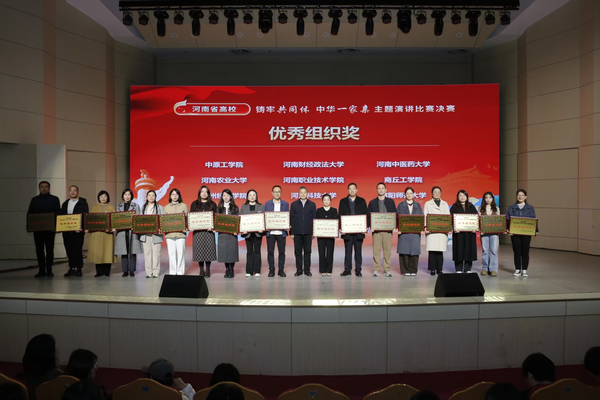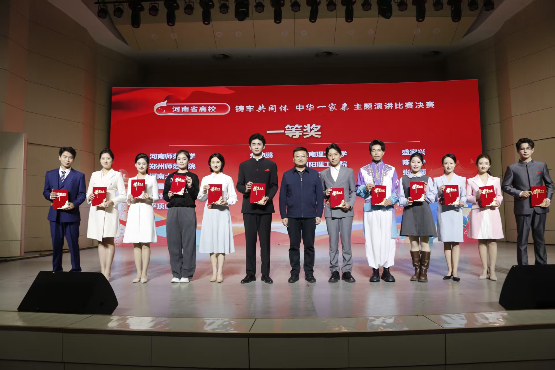 本网讯(特约记者/马丹)11月14日,由国家民委教育司指导,中共河南省委教育工委、省教育厅、省民族宗教委联合主办的河南省高校“铸牢共同体·中华一家亲”主题演讲比赛决赛在河南师范大学落下帷幕。经过全省145所高校层层选拔,50支优秀队伍脱颖而出晋级决赛。我校传媒学院2023级学生陈玉宁凭借原创作品《豫来求学路,“宛梆”牵豫亲》斩获一等奖,学校同时获评“优秀组织奖”。