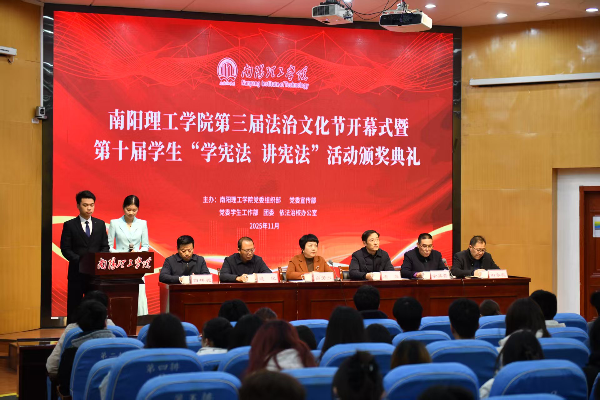 本网讯(特约记者/王冷)11月20日,南阳理工学院第三届法治文化节开幕式在领创空间二楼报告厅举行。副校长高芳放出席活动,党委组织部、党委宣传部、党委学生工作部、团委主要负责人,依法治校办公室全体成员、第十届“学宪法 讲宪法”系列活动获奖学生代表和各教学院普法志愿者代表参加。