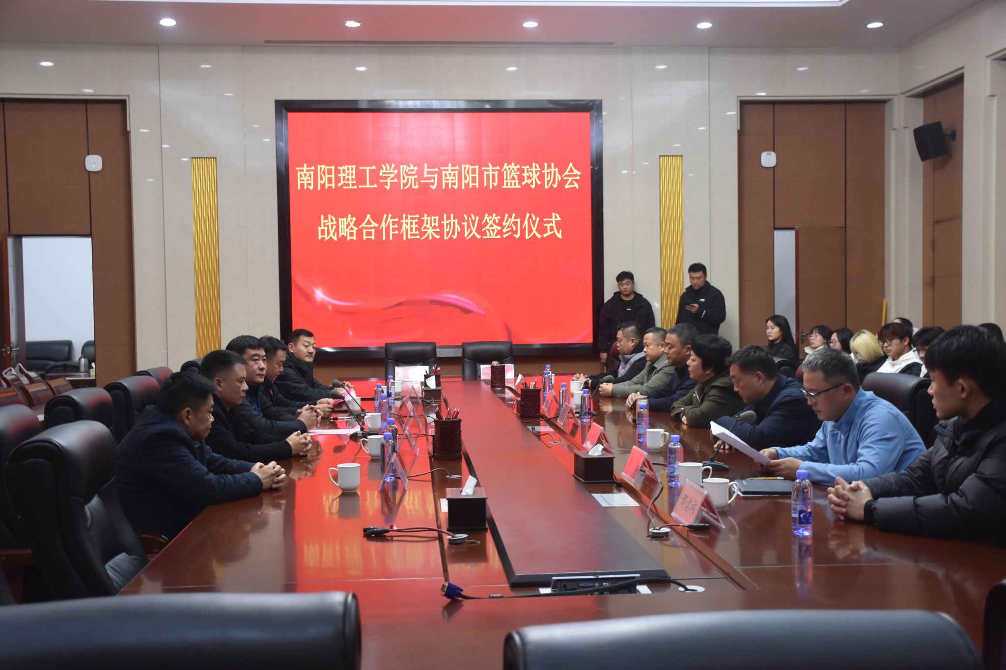 本网讯(特约记者/徐驰)11月21日,我校与南阳市篮球协会战略合作框架协议签约仪式在会议中心举行。南阳市篮协副主席、南阳职业学院执行董事樊宁,南阳理工学院副校长高芳放,南阳市篮协秘书长李明林出席仪式,我校体育教学部和南阳市篮协各部门负责人,师生代表参加仪式。