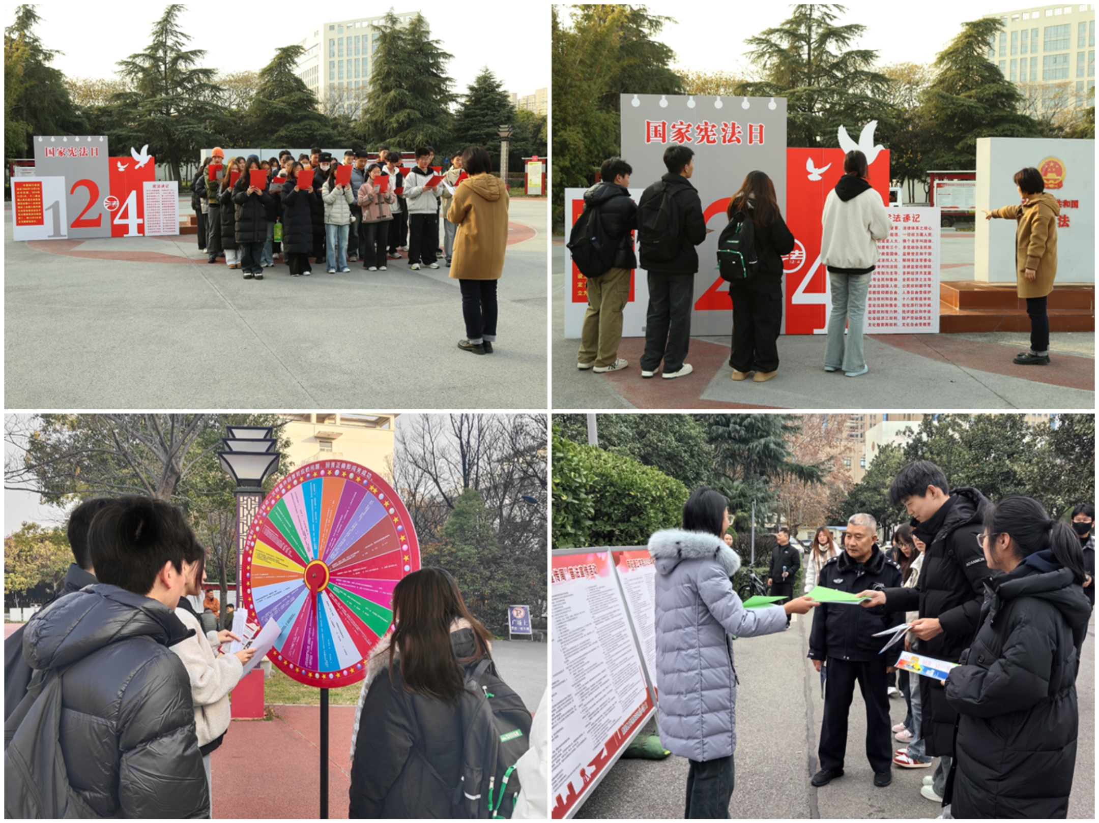 活动组织师生们在法治广场集体诵读宪法条文,深刻领悟其基本原则和核心要义;传唱宪法歌曲,以青春之声传递宪法精神,用昂扬姿态诠释法治信仰;开展宪法普法宣传和法律游园会知识竞赛,普及宪法知识,提升对宪法的理解关注,营造良好法治氛围。
