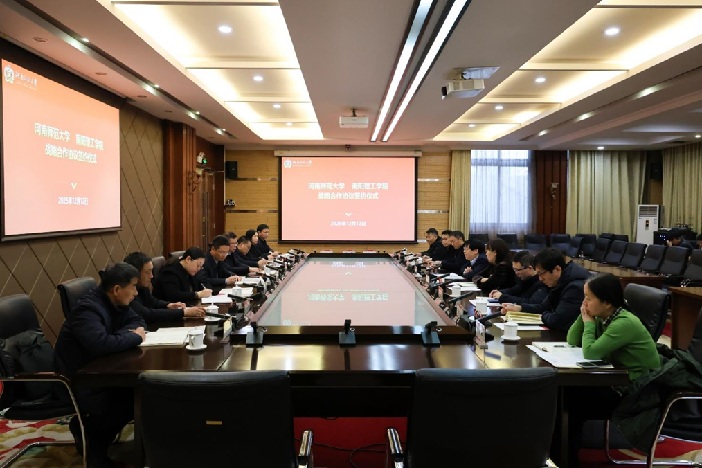 郭海明对我校事业发展取得的成就表示高度肯定,他详细介绍河南师范大学近年来在办学规模、人才培养、科技创新以及师资队伍建设方面的发展成效。他表示,南阳理工学院作为我省特色鲜明的理工类高校,工科领域优势突出、应用型人才培养成效显著,希望以此次签约为契机,两校在工科教育、应用型人才培养方面深入交流,实现资源共享、优势互补、经验互鉴,推动双方教育事业共同提升。
