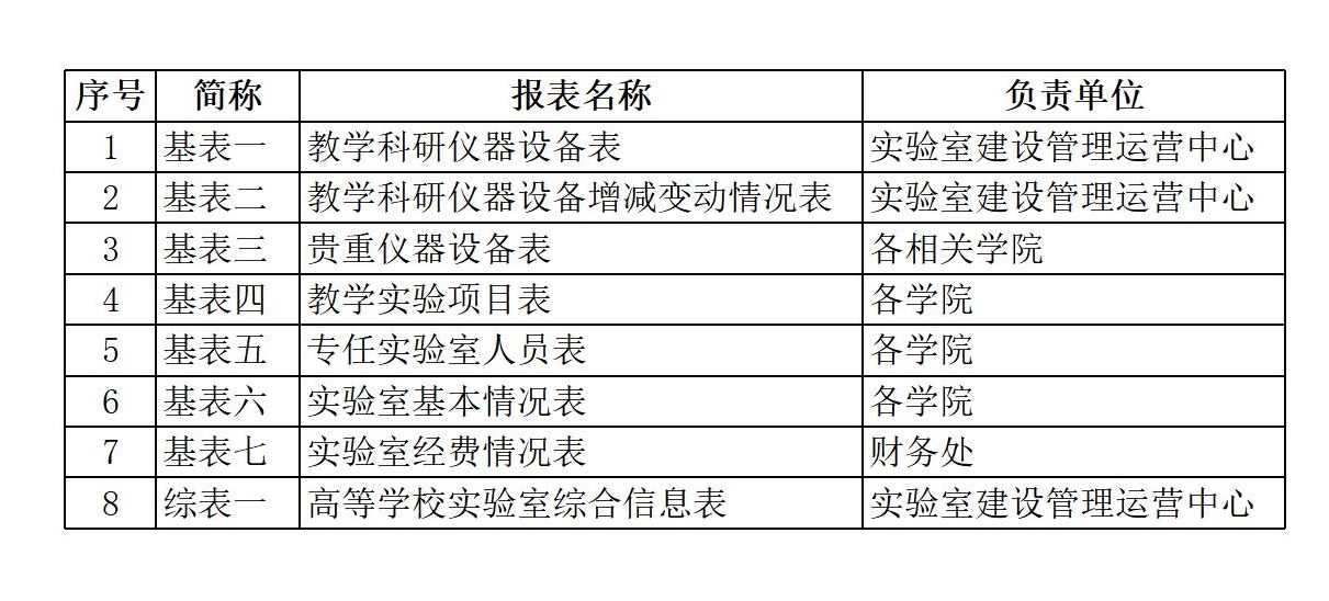 根据教育部《教育部办公厅关于报送2024-2025学年高等学校实验室信息统计数据的通知》和省教育厅《河南省教育厅办公室转发教育部办公厅关于报送2024-2025学年高等学校实验室信息统计数据的通知》文件精神,为做好我校实验室信息统计工作,现将有关事宜通知如下: