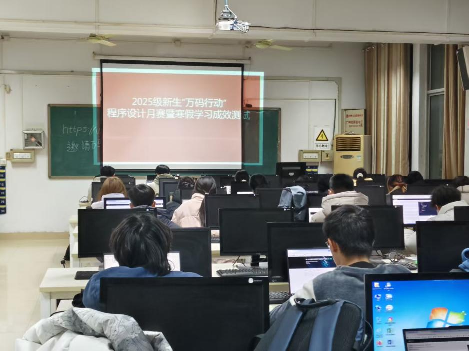 本网讯(特约记者/李洋)3月1日晚,计算机与软件学院举办2025级学生“万码行动”程序设计月赛暨寒假学习情况测试,检验大一学生寒假期间的代码练习成效,进一步点燃学生的学习热情。