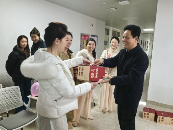祝福与慰问环节温暖人心。学院领导向全体女教职工致以节日问候与美好祝福,肯定大家在教学、科研、管理岗位上的辛勤付出与突出贡献,感谢她们以温柔与坚韧坚守育人初心,为学院发展添砖加瓦。随后,领导为在场女教职工送上精心准备的节日礼物,一份份贴心礼品承载着关怀与敬意,让大家倍感温暖。