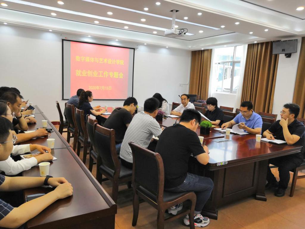 本网讯(特约记者/袁思源)7月15日上午,数字媒体与艺术设计学院在学院会议室召开毕业生就业创业工作会议。院领导班子、教研室主任、创新创业就业指导中心主任及全体辅导员参加。