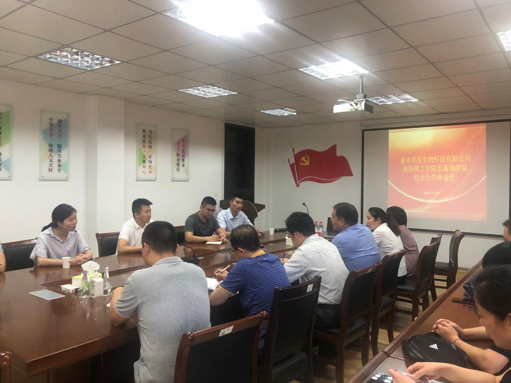 会上,秦壮利介绍了泉州邦尼生物科技公司的生产、研发、市场及供应链管理等方面的现状和未来的发展方向,并详细介绍了泉州邦尼与范蠡商学院在跨境电商领域合作的发展思路及主要措施。