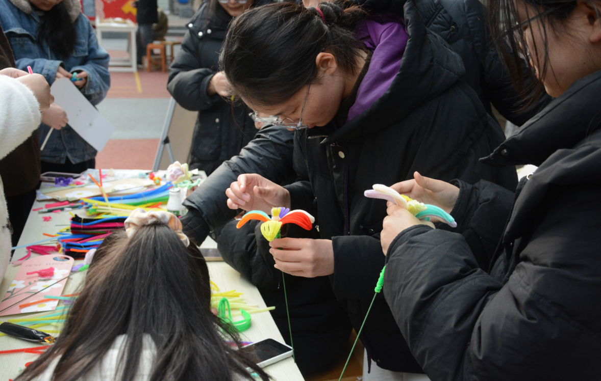 讲座结束后,创意体验活动顺利启幕,六大特色体验区一经开放便吸引了众多女生踊跃参与、驻足体验。祝福卡片区,同学们提笔写下对自己、对同伴的美好期许,一张张承载心意的卡片汇聚成温馨的祝福墙;扭扭棒、奶油胶、超轻黏土体验区,大家充分发挥想象力与创造力,亲手制作出造型可爱、独具特色的手工作品;手串串珠与香囊制作区,同学们细致搭配、精心缝制,将美好期许与节日祝福融入每一件手作之中,尽显专属节日仪式感。