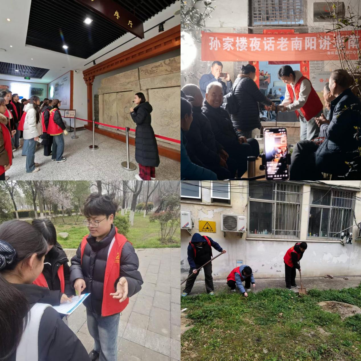 活动期间,学院师生走进社区、敬老院、文化场馆与城市公共空间,开展多领域、多样化志愿服务。在孙家楼社区,志愿者探访红色遗址,与老党员畅谈,结合建筑专业优势解读老城文化,让理论宣讲扎根基层;在3·15消费者权益日之际,志愿者走进公园开展诚信与维权知识宣讲,普及法治理念,服务市民群众;在敬老爱老服务中,志愿者为老人打扫卫生、陪伴谈心,用温情陪伴温暖桑榆晚景;在文化传承一线,“筑梦青鸽”讲解队走进南阳市汉画馆,以专业知识为青少年讲解历史文化,助力本土文化传播;在生态环保与文明城市建设中,志愿者开展巡河护河、校园环境整治等行动,守护碧水蓝天,维护城市公共秩序,传递文明新风。此外,学院师生还走进特殊教育机构开展爱国主题公益活动,将建筑专业知识与爱国主义教育、暖心帮扶相结合,为孩子们点亮梦想,让雷锋精神融入日常、落在细微。