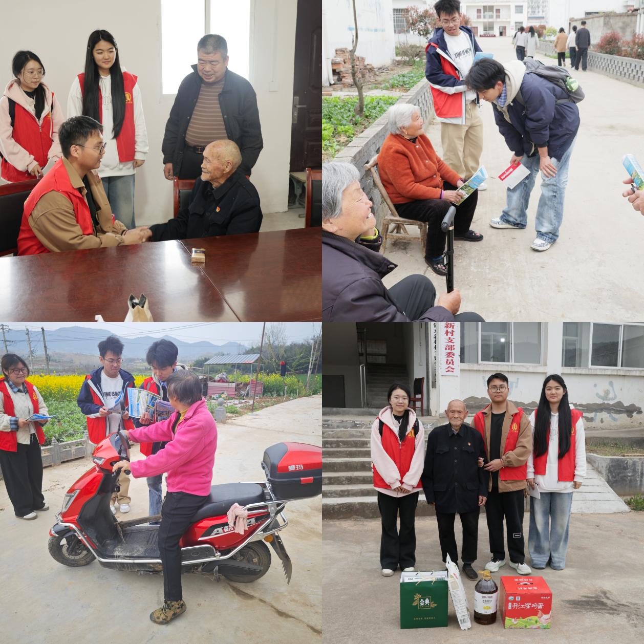 淅川县老城镇陈岭村,师生与学校驻村第一书记李爽正座谈交流,了解村庄产业发展,向村民发放宣传海报,普及南水北调工程意义,宣讲移民奉献事迹,并走访慰问93岁的老党员赵振昌,聆听老人讲述移民经历与入党初心,送上慰问与祝福。