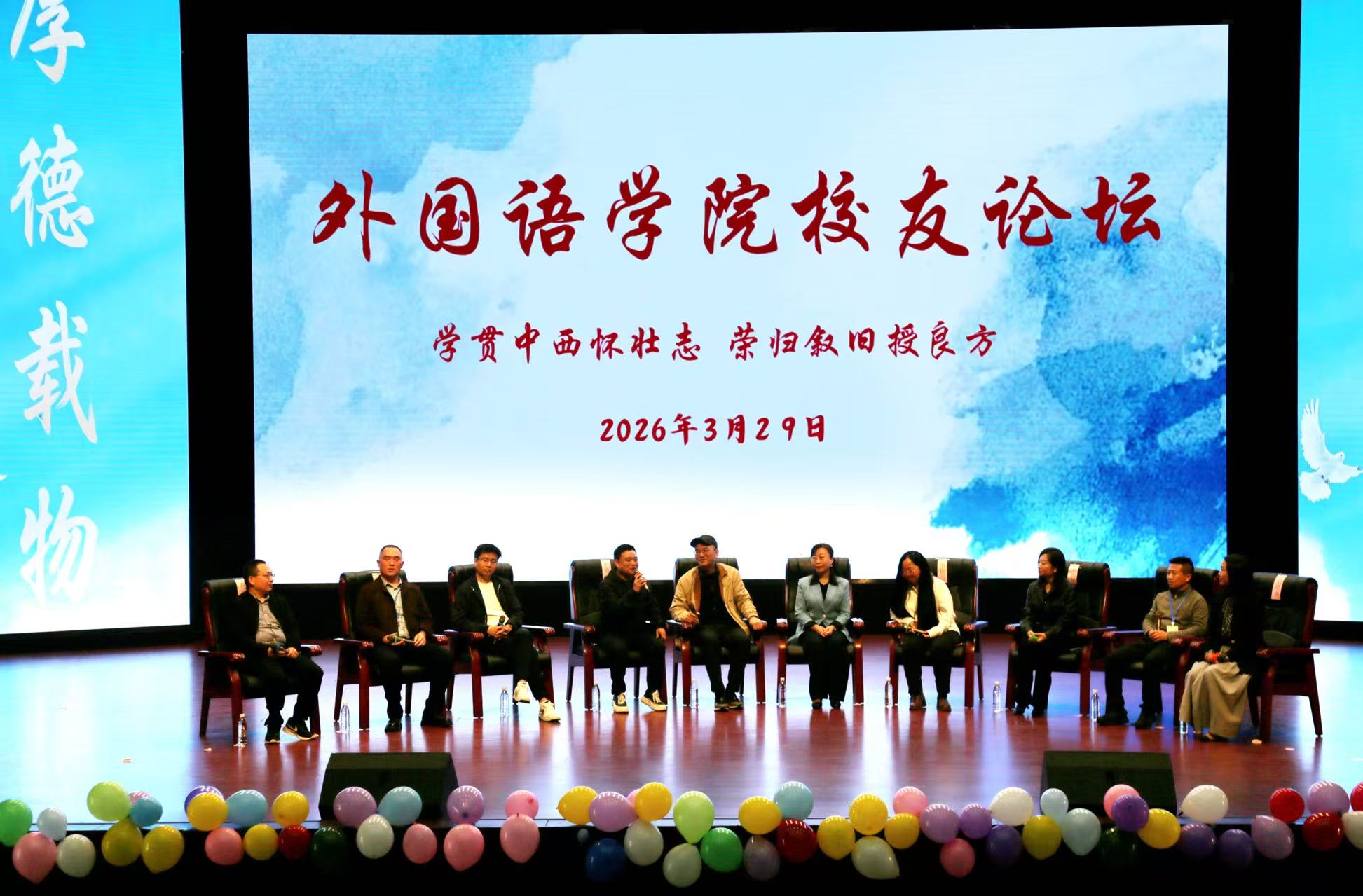 本网讯(通讯员/韦琪琪)3月29日,外国语学院在东校区音乐厅成功举办校友论坛。特邀校友代表、外国语学院班子、全体师生出席论坛。