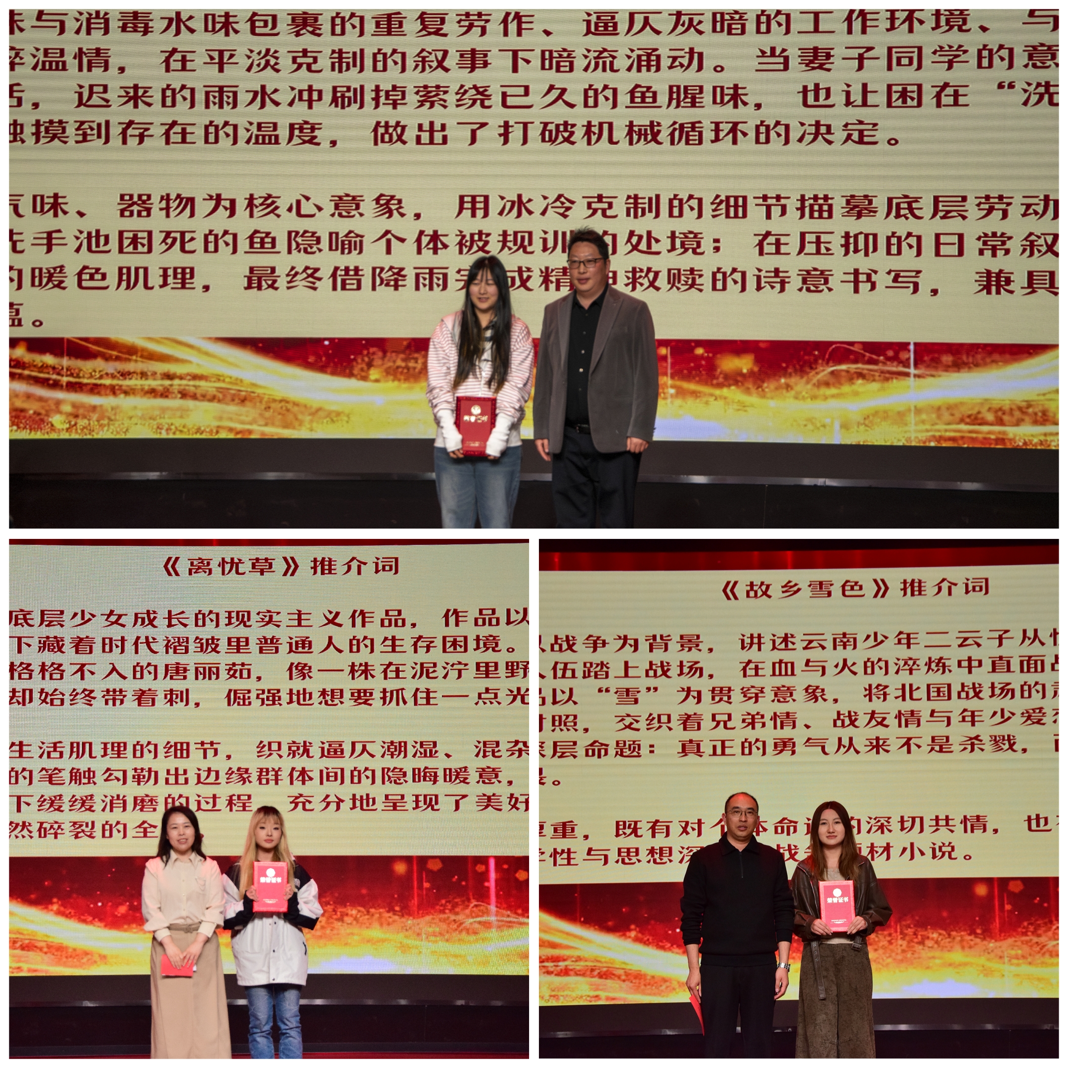 此次颁奖典礼既是学校优秀文学创作成果的集中展示,也是点燃校园文学热情的盛大聚会。未来,学院将持续深耕文学教育,完善创意写作人才培养体系,以文育人、以文化人,让文学之花在校园持续绽放,助力青年学子在文字创作中实现成长与蜕变。(校对/李志光 审核/李存 终审/鲁静薇)