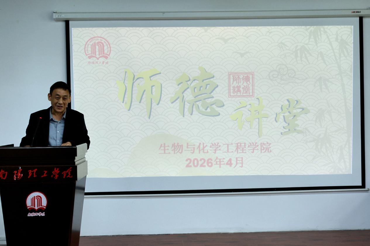 本网讯(特约记者/梁瀚余 学生通讯员/陈佳镓 刘观锋)4月14日,生物与化学工程学院举办师德讲堂活动。活动由党委书记李冉主持,学院领导班子成员和全体教职工参加。