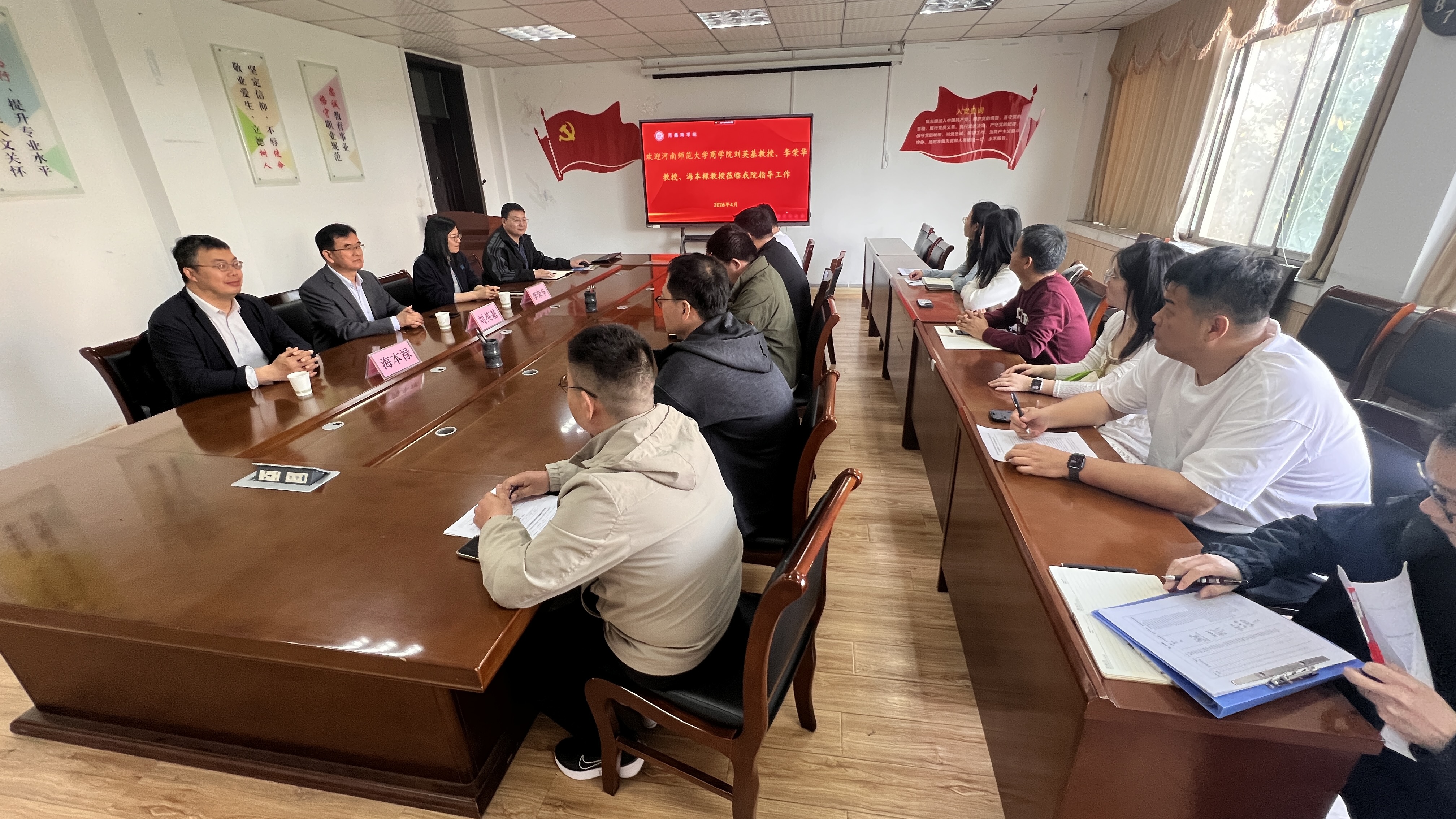 本网讯(特约记者/殷朝兵)4月19日,范蠡商学院组织召开数智背景下工商管理及应用经济学科建设研讨会,邀请河南师范大学商学院刘英基、李荣华、海本禄三位教授现场指导。会议由学院院长郭永奇主持,工商管理、应用经济两个重点学科团队负责人、科研骨干及青年教师代表齐聚一堂,围绕学科高质量发展展开深入研讨,凝聚发展共识。