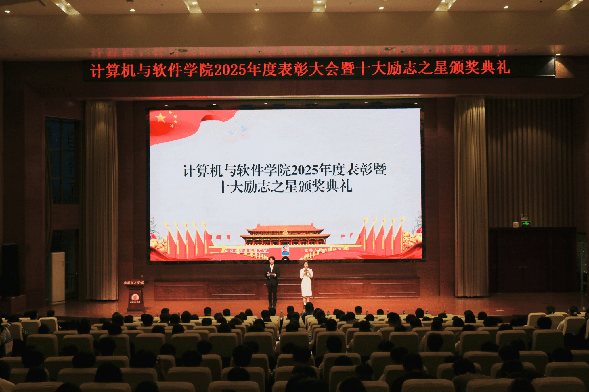 本网讯(学生记者/杨纯)4月19日,计算机与软件学院在第三报告厅举行2025年度表彰大会暨十大励志之星颁奖典礼,全体辅导员及师生代表参加会议。