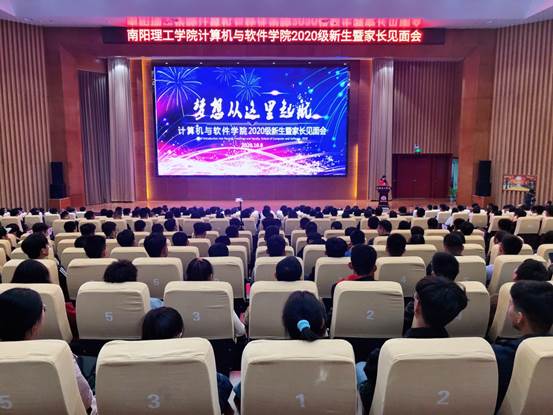 本网讯(特约记者/曾智)10月8日晚,计算机与软件学院在第三报告厅举行2020级新生暨家长见面会,会议在哔哩哔哩网站同步直播。计算机与软件学院领导班子、团学办及2020级500余名新生和家长参加此次见面会。见面会由计算机与软件学院党委副书记申玮主持。