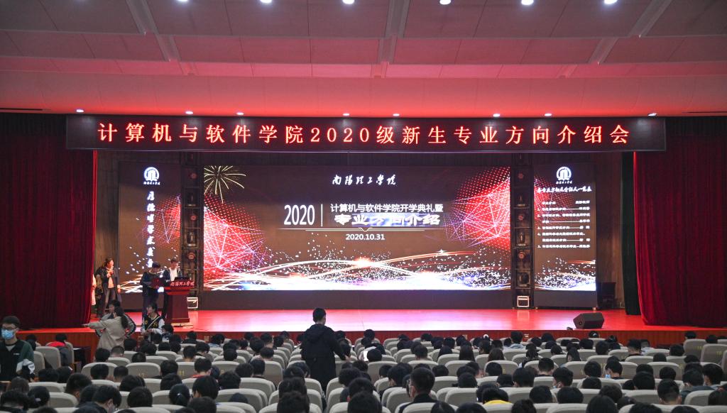 本网讯(特约记者/曾智 学生记者/谢一丹)10月31日上午,计算机与软件学院在毕业大厅举办2020级新生开学典礼暨专业方向介绍会。学院领导班子、各专业负责人、辅导员以及2020级新生共同参加此次大会。大会由副院长郑珂主持。