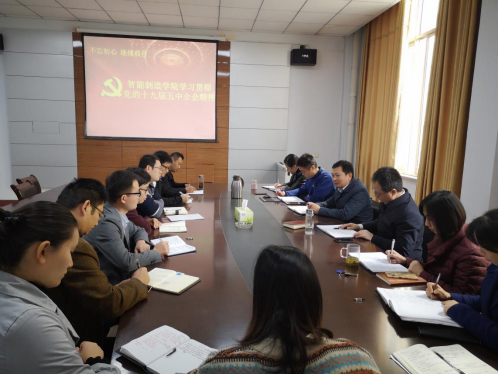 本网讯(特约记者/刘煜)11月4日上午十点,智能制造学院党委召开理论学习中心组(扩大)学习会,传达学习党的十九届五中全会精神。会议由党委副书记崔贺成主持,学院党委中心组成员、党委委员及各支部书记参加会议。