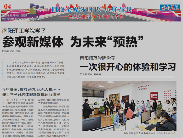 南阳报业传媒集团各媒体对我校传媒学院师生参访活动进行了报道。(审核/刘庚)