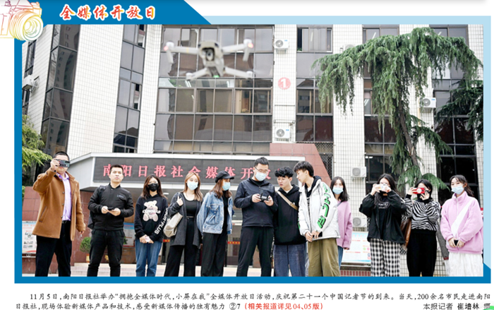 当日是南阳日报社举办的“全媒体开放日”。师生一行先后来到南阳日报社旗下南阳网、直播南阳云播台、梅溪视频云视台、政务新媒台、网络技术开发平台和党媒访谈厅等处,了解媒体融合发展现状,现场体验云日报、直播、短视频制作以及无人机操作等新媒体产品和技术,与编辑记者面对面交流,近距离感受南阳日报社改革发展的崭新气象。