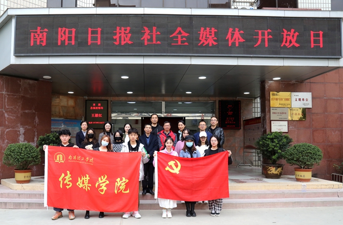 本网讯(特约记者/雨轩)11月5日,传媒学院部分党员、师生组成学习考察组,在学院党委委员、副院长罗新宇带领下走进南阳报业传媒集团,围绕“体验党报媒体融合发展,提升传媒专业技能素养”主题开展党日活动,全身心体验新时代下地市党报全媒体发展变化。南阳日报社党委委员、副总编辑徐聪接见师生一行,编委冯兴阁全程陪同。
