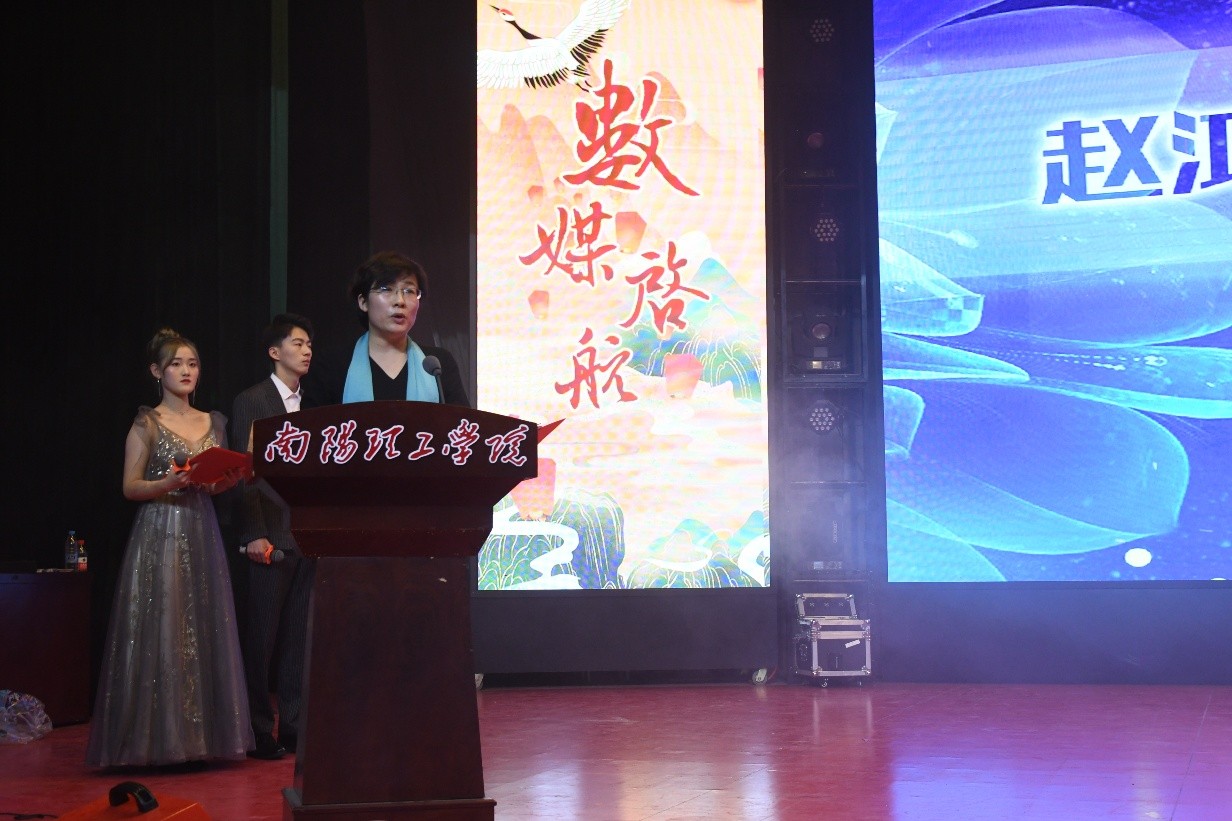 本网讯(特约记者/曲飞 唐振海)11月12日,数字媒体与艺术设计学院“赵鸿甫先生艺术奖学金”颁奖典礼暨2020年迎新生晚会在毕业大厅举行,副校长王玉磊出席并致辞,学生处、校团委、校教育发展基金会相关负责同志和2020级全体新生参加。