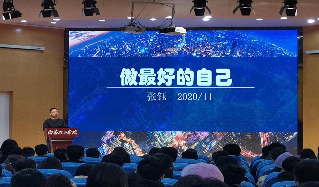 本网讯(特约记者/张露 学生记者/丁奇帅)11月29日上午,我院优秀校友张钰、王浩应邀回母校作以“寻找最好的自己”为主题的专题报告。此次报告由招生就业处主办,信息工程学院承办,400名师生代表参加。
