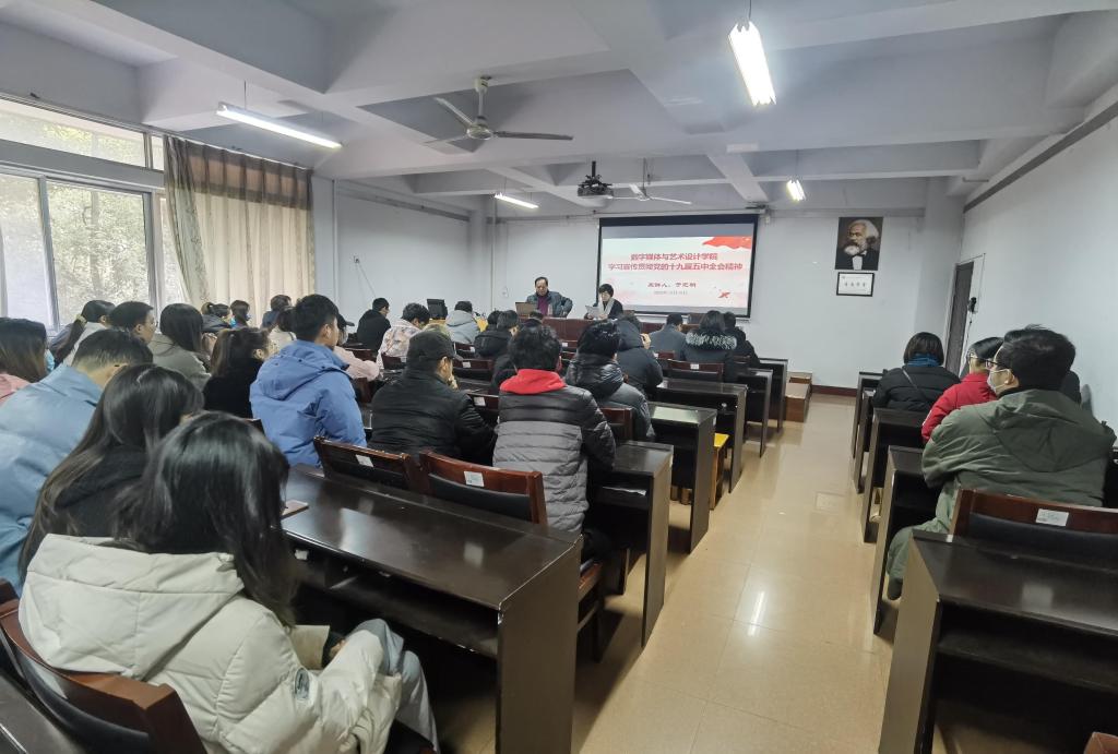本网讯(特约记者/张睿)12月18日,校党委委员、统战部部长于元明到数字媒体与艺术设计学院宣讲党的十九届五中全会精神。学院全体教师、部分学生党员参加报告会,报告会由学院党委书记李慧主持。