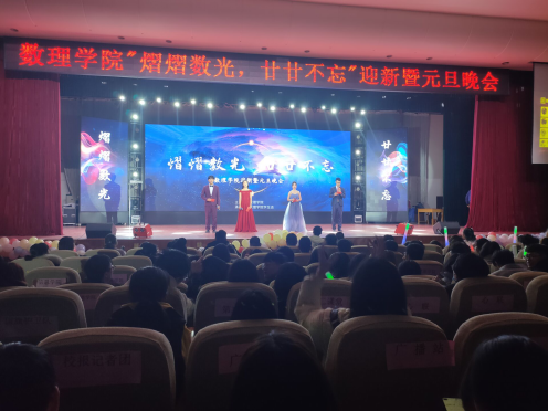 本网讯(特约记者/冯清 学生记者/谷雪鹏)12月19日,数理学院在毕业大厅隆重举办“熠熠数光,廿廿不忘”迎新暨元旦晚会。学生处处长路瑞峰、校团委副书记高亢以及数理学院全体师生800余人观看晚会。