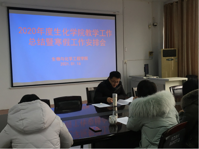 本网讯(特约记者/曾宪彩)1月16日下午,生化学院在9225会议室召开2020年度教学工作总结暨寒假工作安排会。教研室主任、教学督导组成员、课程组负责人、课程思政项目负责人参加会议。