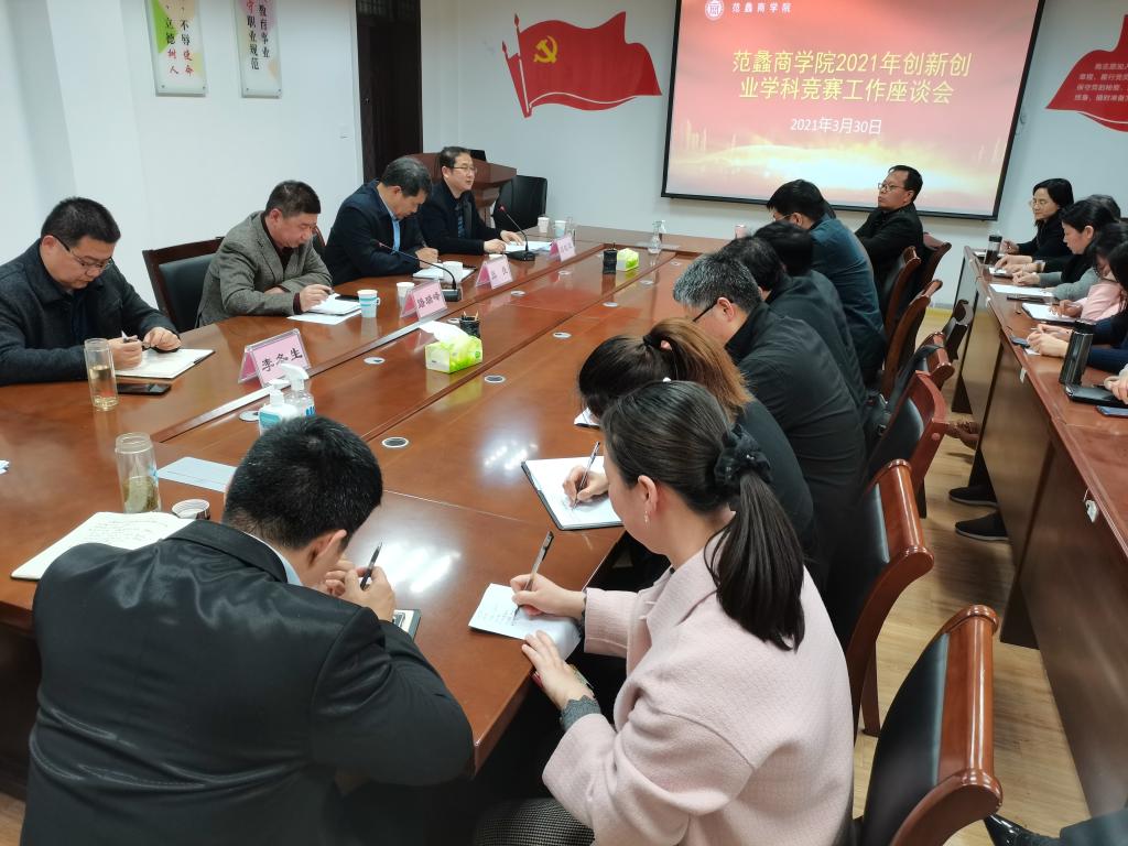 本网讯(特约记者/袁健)3月30日,范蠡商学院举行2021年创新创业学科竞赛工作座谈会,校党委学生工作部负责人、学院负责人出席会议,教研室负责人及创新创业学科竞赛工作骨干教师代表等参加会议。