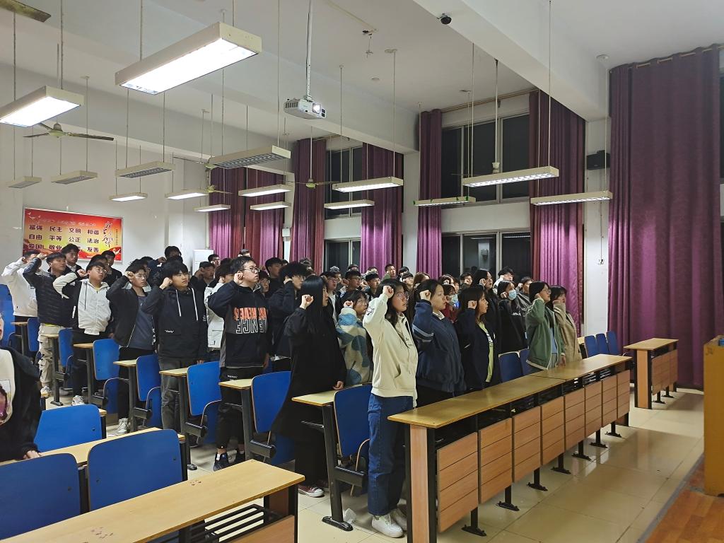 班会以“革命先烈诗文诵读”为主要内容,引导学生了解中国革命和党的历史,传承红色文化,弘扬英烈精神。激发同学们缅怀先辈,致敬英雄,不忘初心,牢记使命,砥砺前行的爱国之情。班会上,全体党员重温入党誓词。