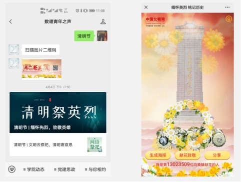 本网讯(特约记者/谭萌)为缅怀革命先烈,传承红色基因,清明节期间,数理学院通过多种形式开展“我们的节日·清明节”系列活动。