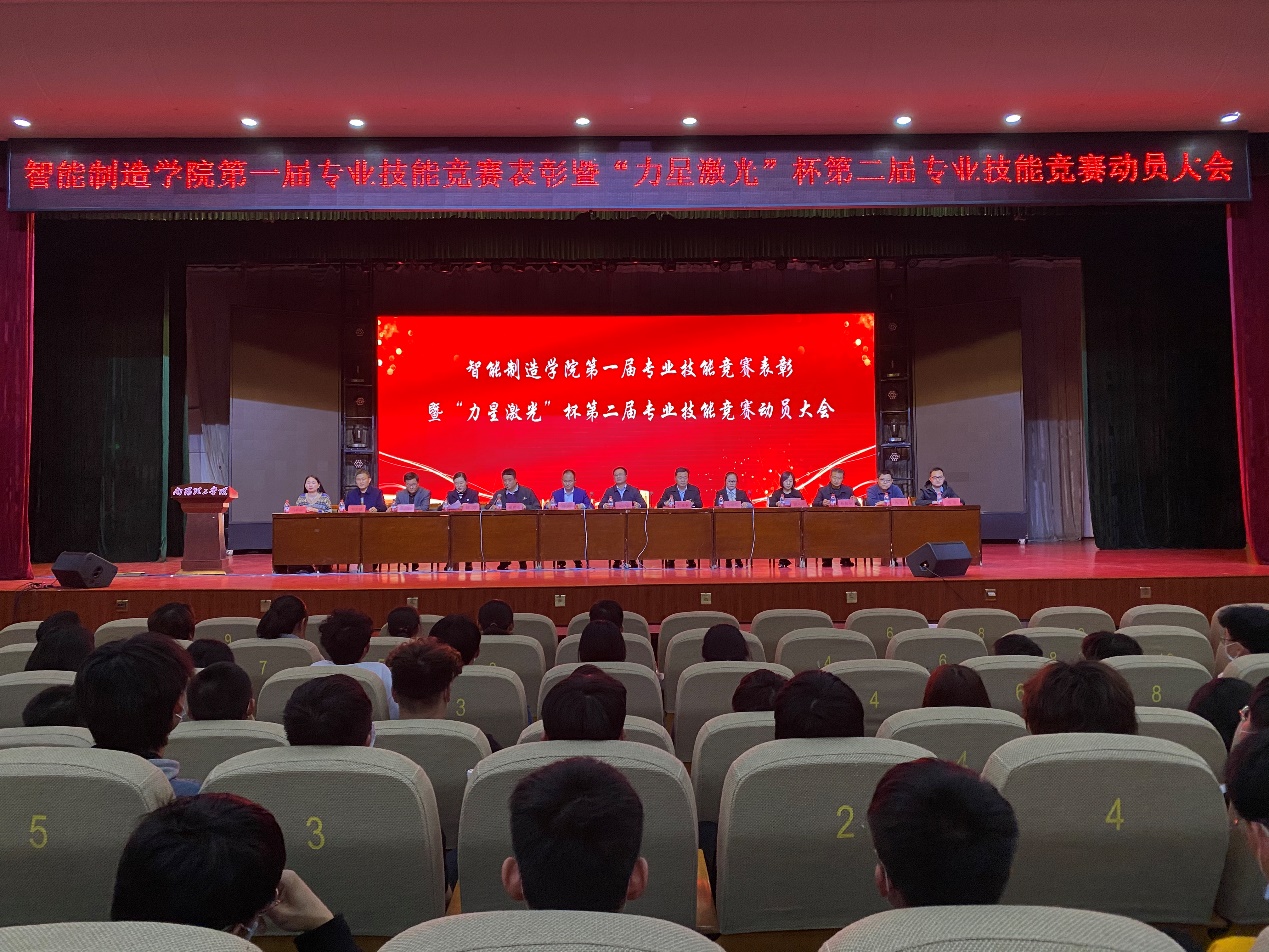 本网讯(特约记者/李媛)4月14日,智能制造学院举行第一届专业技能竞赛表彰暨“力星激光”杯第二届专业技能竞赛动员。学院领导班子、东莞市力星激光有限公司河南子公司负责人出席表彰会,各教研室主任、辅导员和20级全体学生参加大会。