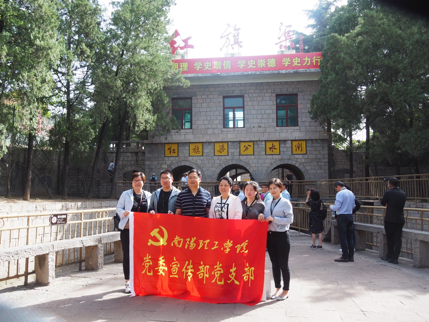 本网讯(记者/鲁静薇)近日,党委宣传部支部全体党员在支部书记高芳放带领下赴林州市红旗渠,开展“弘扬红旗渠精神,立足岗位做贡献”主题党日活动。