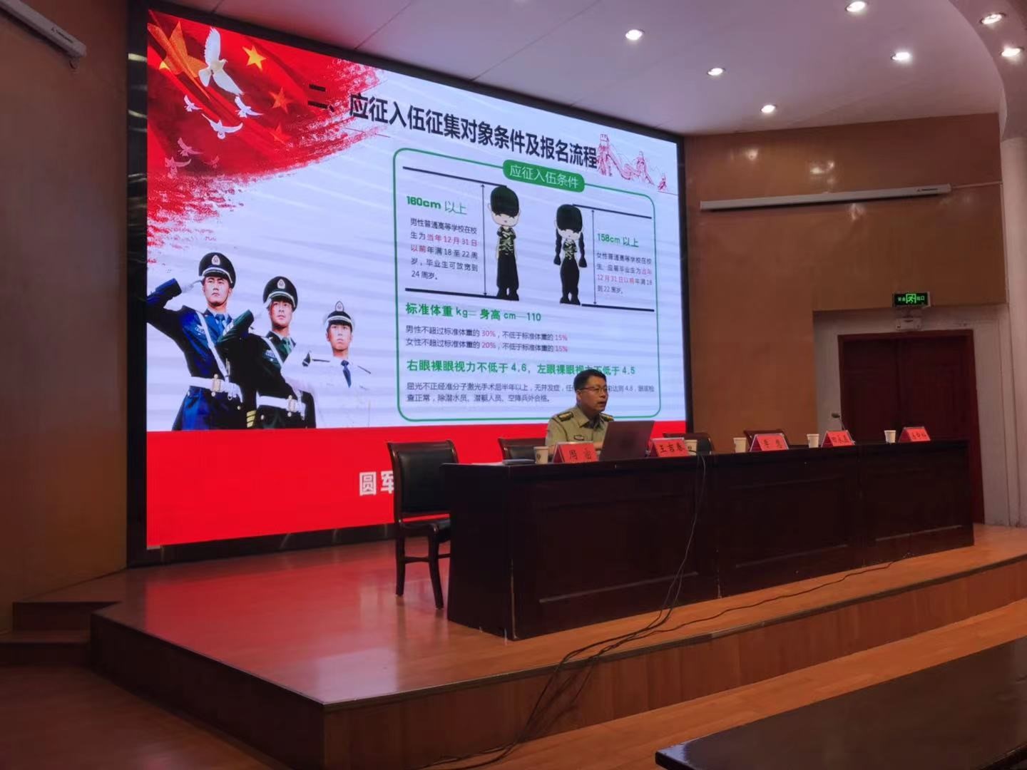 本网讯(特约记者/唐振海)5月12日,数字媒体与艺术设计学院邀请学校人民武装部负责人开展大学生应征入伍相关政策答疑活动,学院党委主要负责人、部分骨干教师代表、全体辅导员老师和300余名学生参加活动。