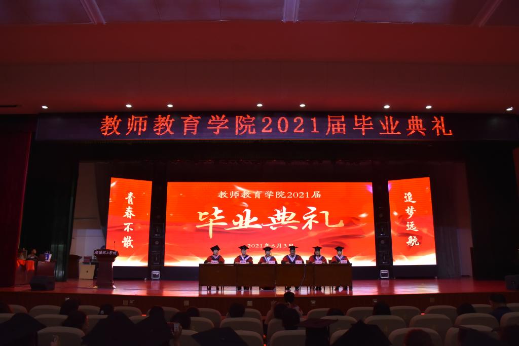 本网讯(特约记者/何雷雨 学生记者/孙知新 刘为宇)青春不散,追梦远航。6月3日,教师教育学院为2021届毕业生举办毕业典礼。学院领导班子、学术委员会委员、教师代表及部分学生家长出席典礼,全体在校学生参加活动。党委书记冯建主持此次典礼。