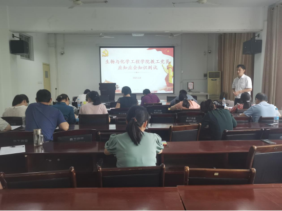 本网讯(特约记者/路守通)6月8日,生物与化学工程学院举行教工党员应知应会知识测试,以随堂测验的形式,从党的基本理论和知识、党史、入党誓词等方面对教工党员党史学习情况进行测试,考察对“四个意识”、“两个维护”等基本理论和党的重大历史事件的了解。