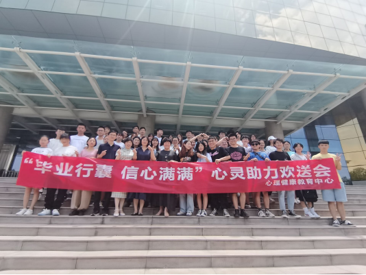 本网讯(特约记者/孟凡锐) 6月23日,心理健康教育中心举行“毕业行囊 信心满满”心灵助力欢送会,为毕业生送上“心理能量包”。2021届毕业生代表及大学生心理联合会学生参加活动。