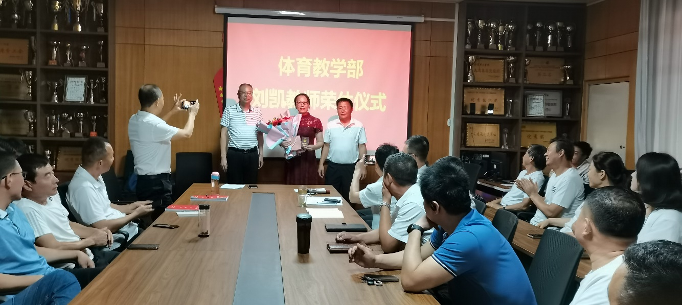 本网讯(特约记者/徐驰)7月1日上午,体育教学部为该部第一位光荣退休教师刘凯举行荣休仪式,教学部全体党政领导及教职工参加仪式。