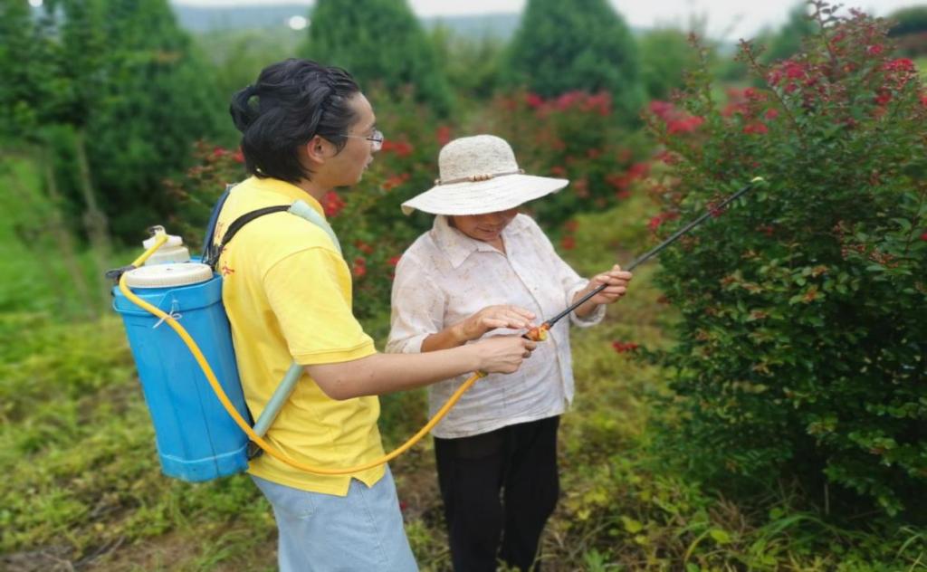 7月10日,志愿服务队分两队前往泓森植物园与九重镇农地开展实地调研。队员们在泓森植物园利用无人机航拍,对植物园的植被、树木分布等进行了解,同时帮助工人喷洒农药,了解其工作情况,介绍科普无人机工作效果。前往淅川县九重镇农地的队伍,根据当地作物生长需要开展具体调研,实施无人植保机农药喷洒工作,其效果得到当地村民充分肯定。