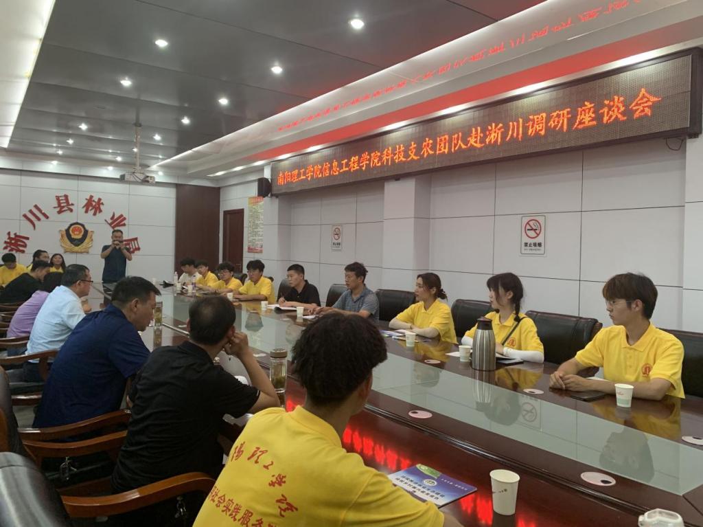 7月9日,实践服务队前往淅川县林业局参加调研座谈会。淅川县林业局局长周桃龙表示,无人机相关技术的广泛应用为淅川县农林业发展提供极大便利,他向在场师生提出无人机在使用时出现的问题,希望学校能给予相应的技术指导和帮助。学院指导老师建议将无人机方面的专业知识与林业单位的管理相结合,从而减少人力投入,提高工作效率。双方就无人机应用中需要优化的地方进行探讨,并表示将在科研实践、人才培养方面开展深入合作。
